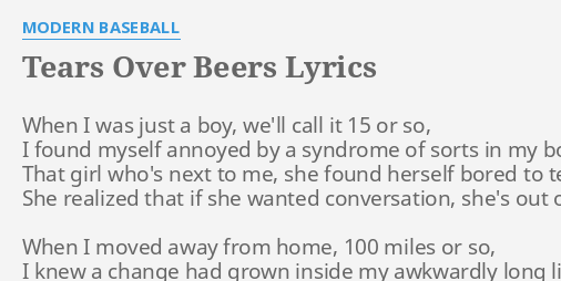 Tears Over Beers Lyrics By Modern Baseball When I Was Just