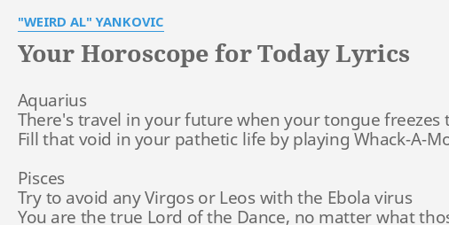 Your Horoscope For Today Lyrics By Weird Al Yankovic Aquarius