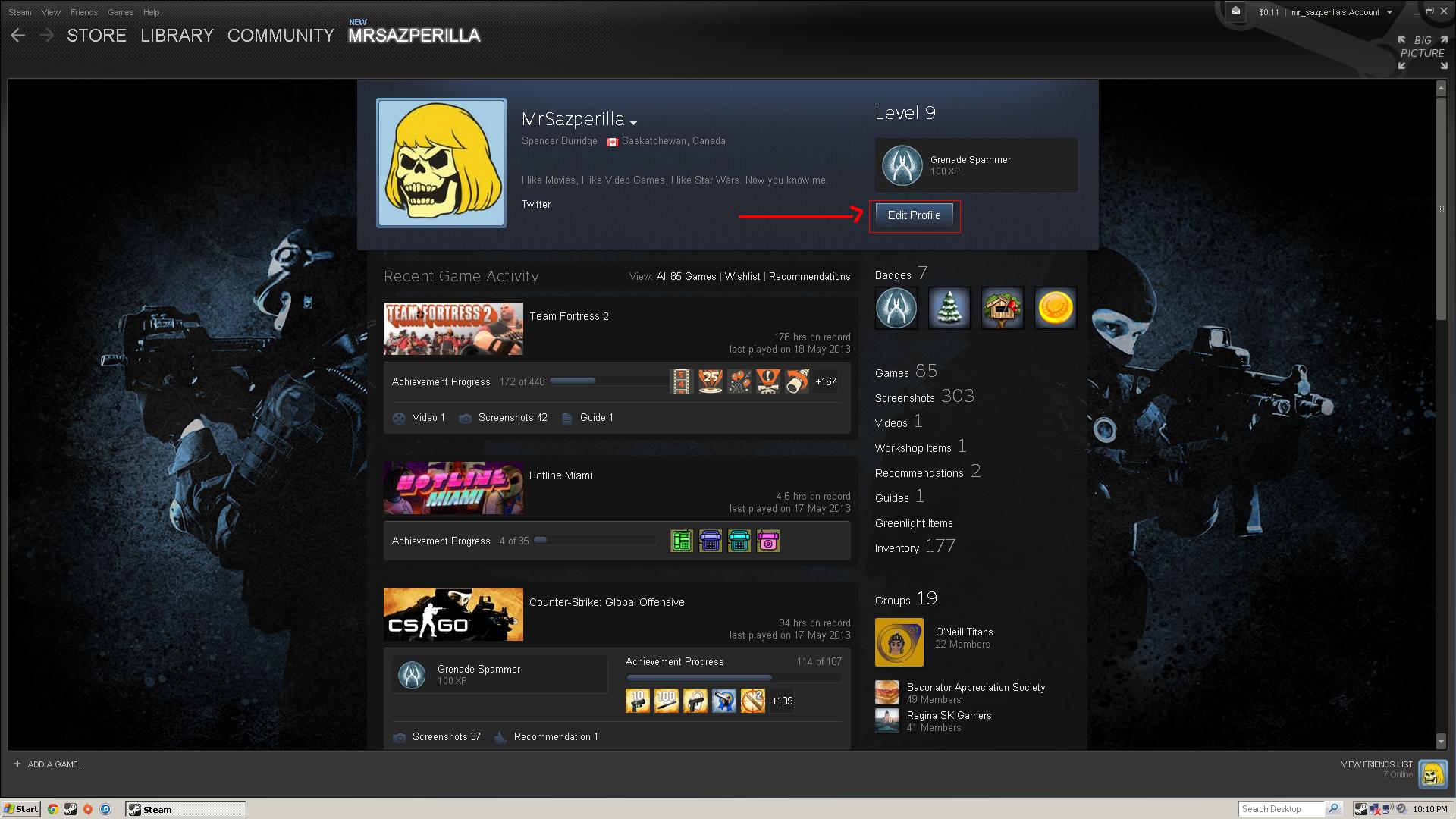 In the navigation menu you will see a profile option with your name on it. You will see your profile in it s entirety. If you need to change your steam profile picture it s pretty easy.