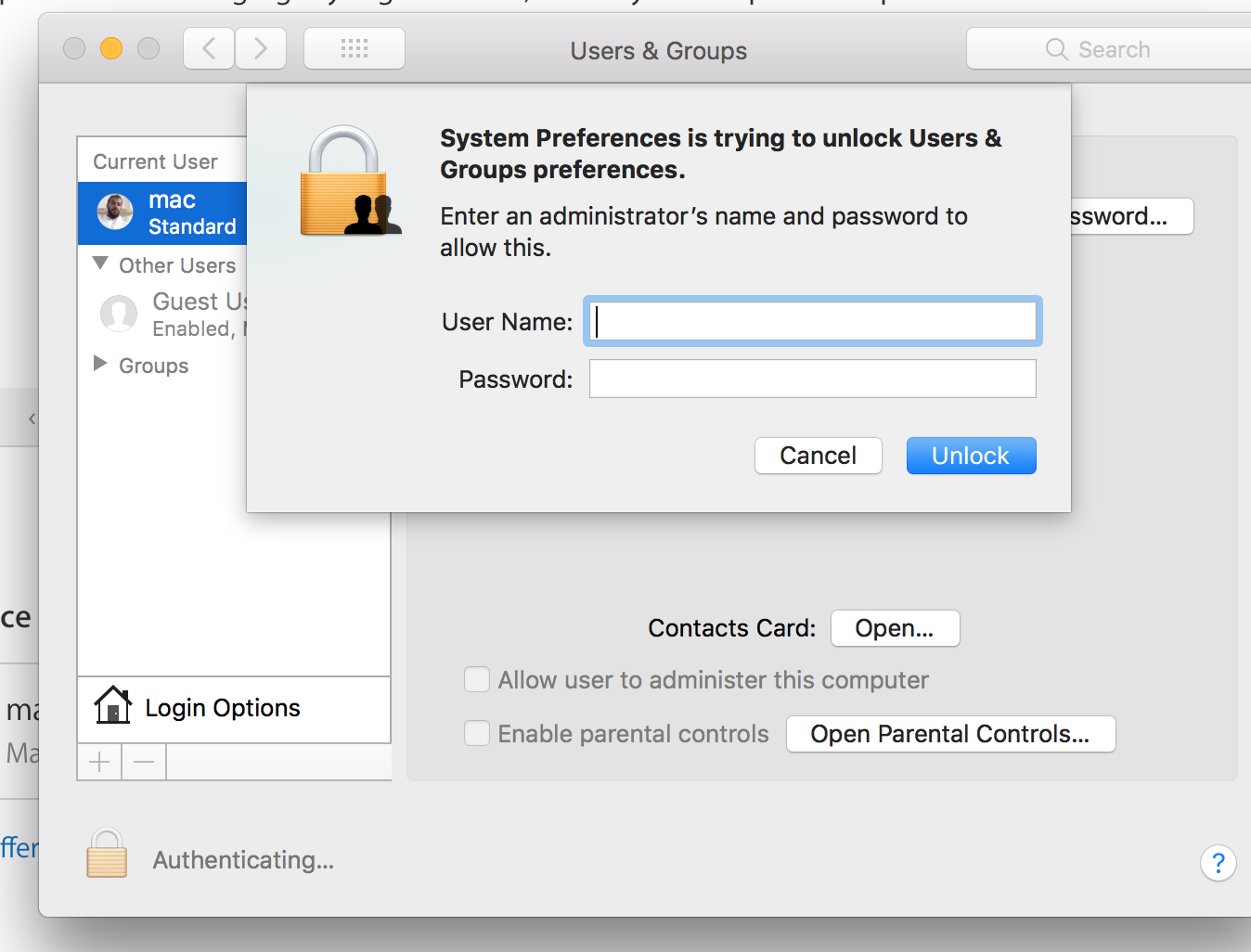 Change your desktop wallpaper. Click the lock in the bottom left corner of the users groups window.