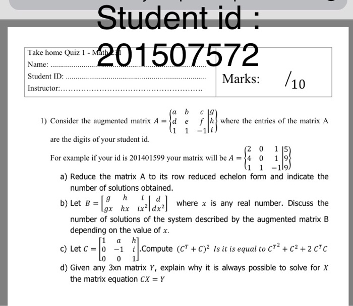Solved Student Id 201507572 Take Home Quiz 1 Mat Name St